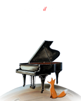 Una volpe sognante che si trova per la prima volta davanti a un piano.