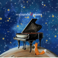 Borsa con disegno della Volpe che incontra per la prima volta un piano. Disegnata da Silvia. Dietro c'è il logo Sognandoilpiano.